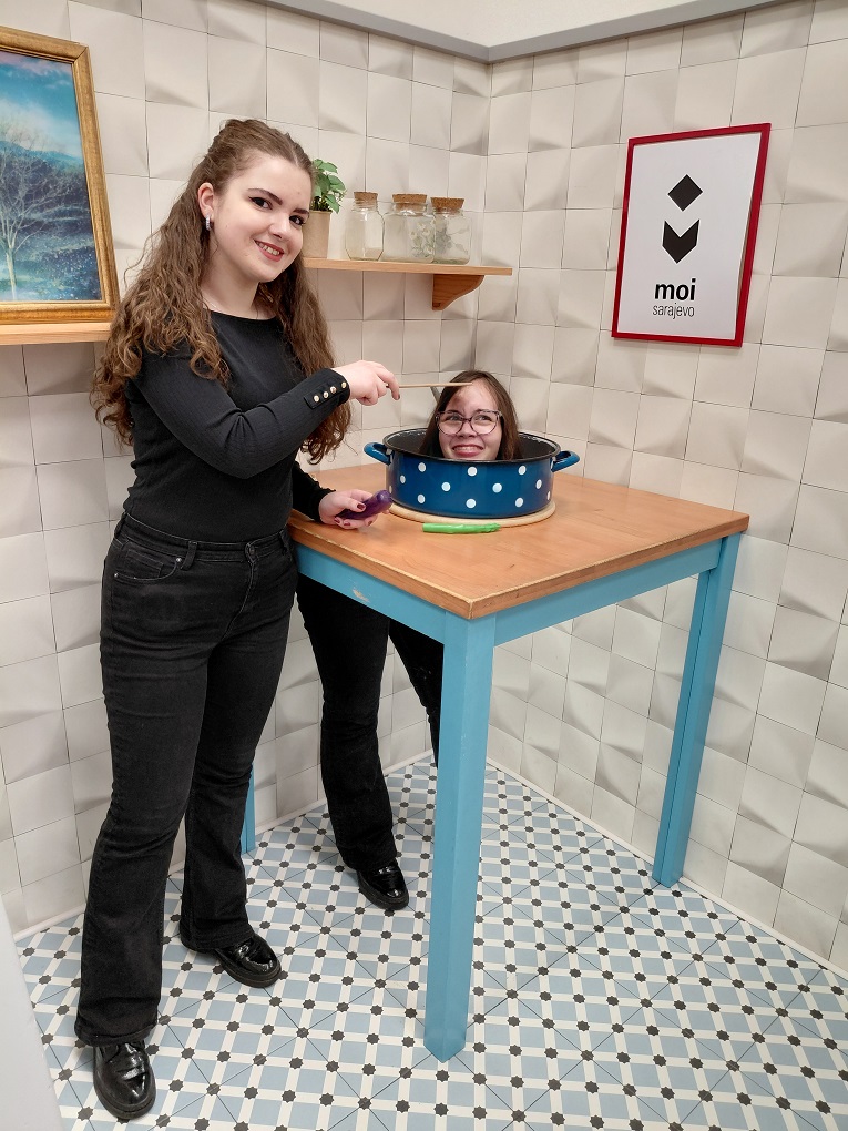 Dana 3.4. 2026. godine, u pratnji voditeljice Biblioteke, Anese Šošević, učenice I-1: Dinela Pirović, Ana Sarić i Emela Zejnilović, posjetile su Muzej optičkih iluzija u Sarajevu – koncept koji spaja zabavu, edukaciju i nezaboravno vizuelno iskustvo.
