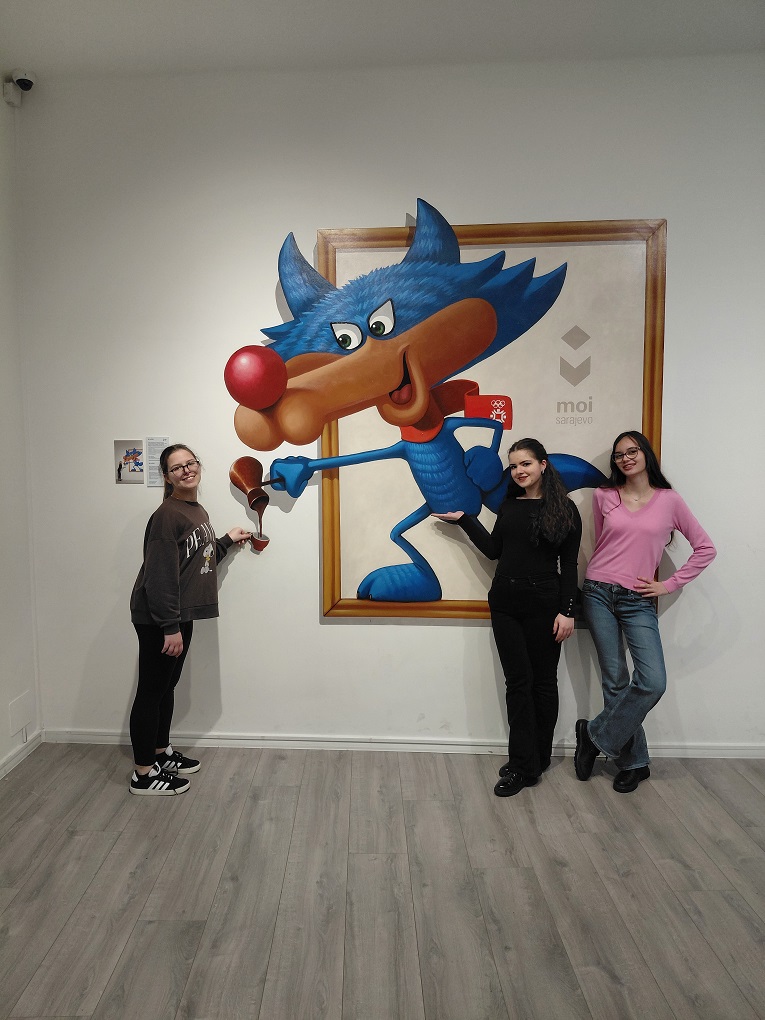 Dana 3.4. 2026. godine, u pratnji voditeljice Biblioteke, Anese Šošević, učenice I-1: Dinela Pirović, Ana Sarić i Emela Zejnilović, posjetile su Muzej optičkih iluzija u Sarajevu – koncept koji spaja zabavu, edukaciju i nezaboravno vizuelno iskustvo.