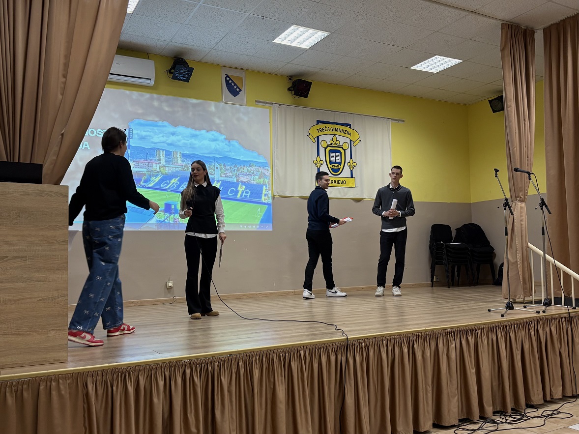 Grupa učenika IV1, Hena Rastoder, Nudžejma Kraman, Ishak Kulenović i Haris Aganović, su svoj projektni zadatak odlučili prikazati i podijeliti sa drugim učenicima škole te su amfiteatru održali edukaciju na temu „Kultura navijanja“ dana 18. 11. 2025. godine.