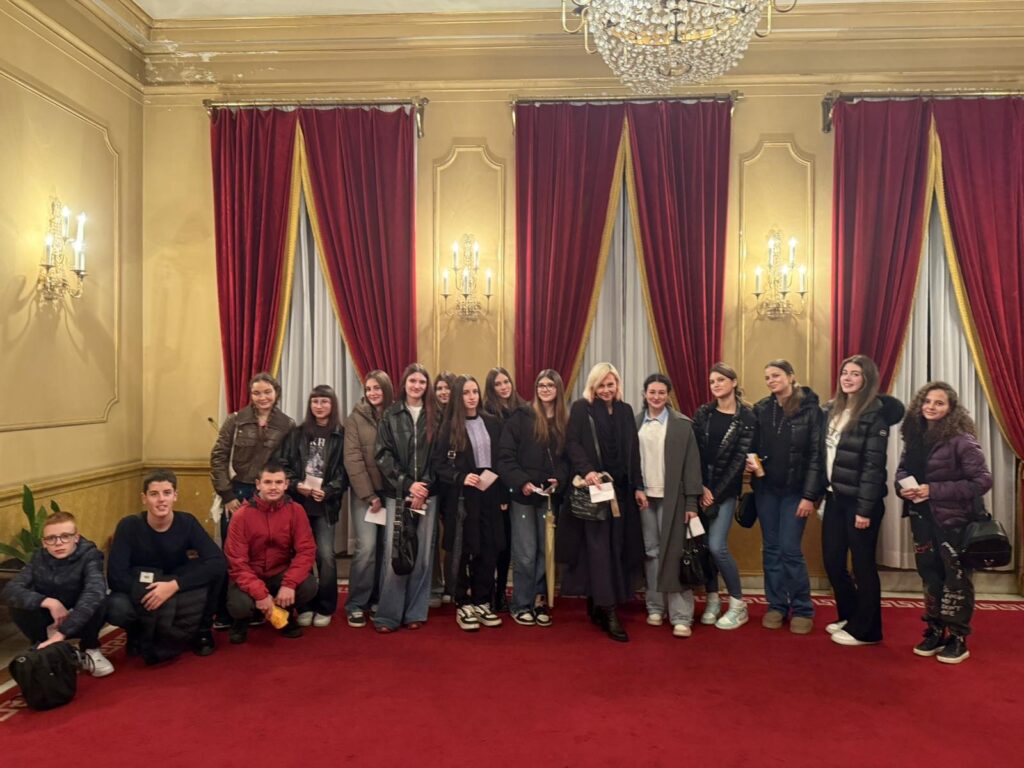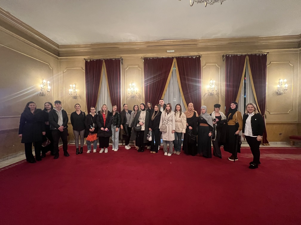 U ponedjeljak, 3. 11. 2025. godine, oko stotinu gimnazijalaca, sa profesoricama Dženanom Nezirević, Senadom Turajlić, Azrom Kazija i Hasijom Dedović, uživali su u Narodnom pozorištu u izvedbi predstave „Mišolovka“, najduže kontinuirano igranoj drami.