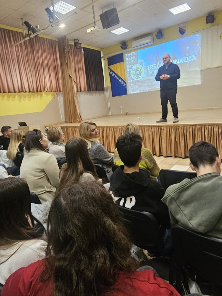 Treća gimnazija kontinuirano posvećuje pažnju mentalnom zdravlju i emocionalnoj dobrobiti svojih učenika i njihovih porodica. U tom okviru, naša škola imala je čast ugostiti Jasmina Bešića, fiziopsihoterapeuta i člana Savjetodavnog odbora škole, koji je održao dva tematski povezana predavanja, namijenjena učenicima i roditeljima.