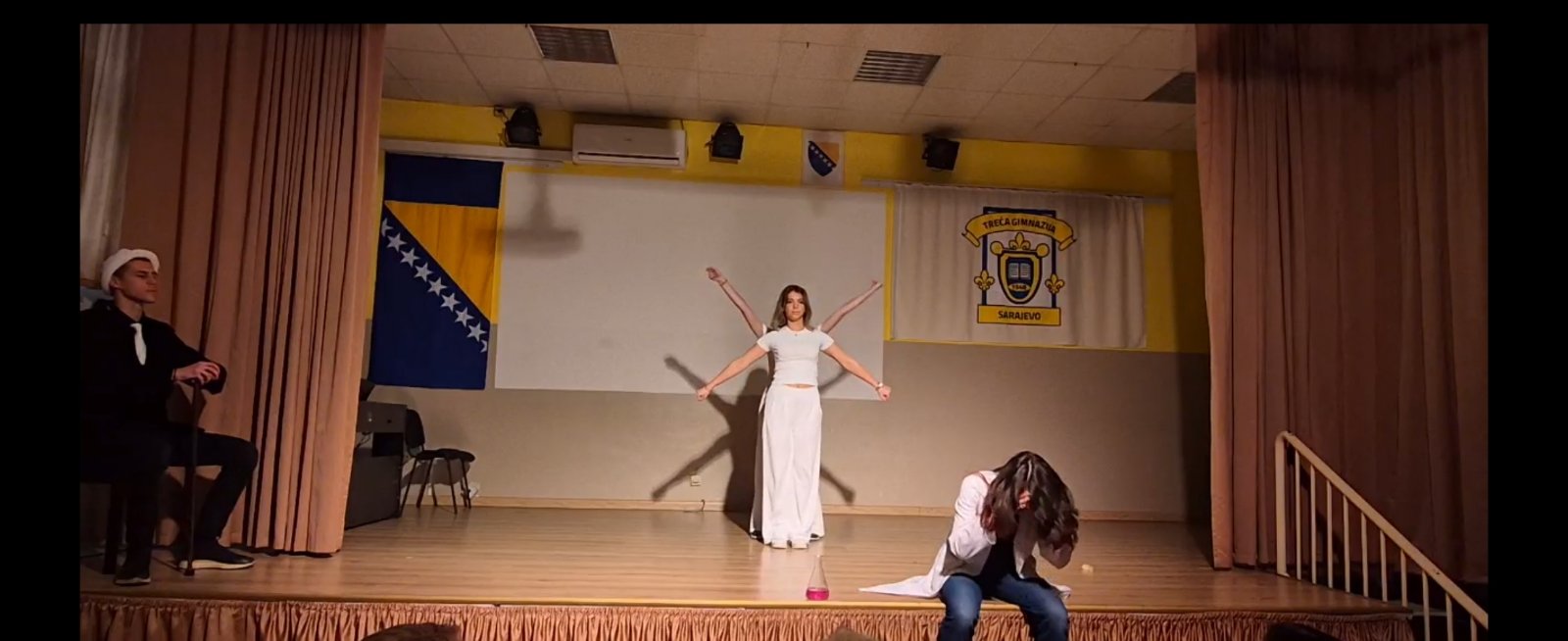 Školski amfiteatar zadrhtao je pod koracima sjenki koje poznajemo iz priča, ali i pod koracima onih koje još nismo smjeli upoznati. Odjeljenje III-5, predvođeno profesoricom Sanjom Salihović, izvelo je čudovišta naših snova i noćnih mora: dvostruko lice Dr. Jekylla i Mr. Hydea, tužni i krhki Frankenstein, moralno izopačeni Dorian Gray, istovremeno zastrašujući i privlačni Dracula, besmrtni vampiri i još mnoštvo bića što šapuću iza zavjesa.