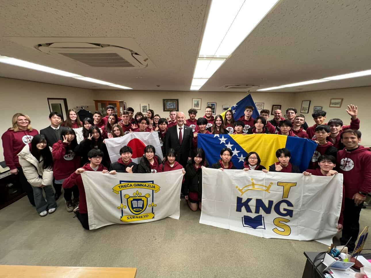 Posebnu čast predstavlja činjenica da su naši učenici posjetili Ambasadu Bosne i Hercegovine u Japanu, gdje ih je srdačno ugostio ambasador Bosne i Hercegovine u Japanu, gospodin Mato Zeko. Također, posjećena je i Zgrada Nacionalne skupštine Japana, gdje su učenici imali priliku razgovarati i razmijeniti mišljenja sa gospodinom Minoruom Kiuchijem, ministrom za ekonomsku sigurnost Japana, te gospodinom Fujijem Hisayukijem, članom Predstavničkog doma Nacionalne skupštine Japana, na čemu smo im iskreno zahvalni. Posebnu zahvalnost upućujemo i gradonačelniku općine Chuo Ward u Tokiju, gospodinu Taitu Yamamotu, koji je učenike srdačno ugostio i razgovarao s njima o njihovim iskustvima tokom boravka u Tokiju.