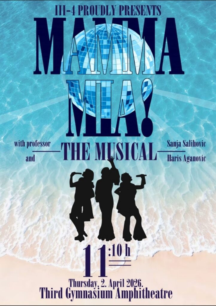 Mjuzikl “Mamma Mia”– scenska izvedba odjeljenja III4 i Harisa Aganovića, pod mentorstvom prof. Sanje Salihović