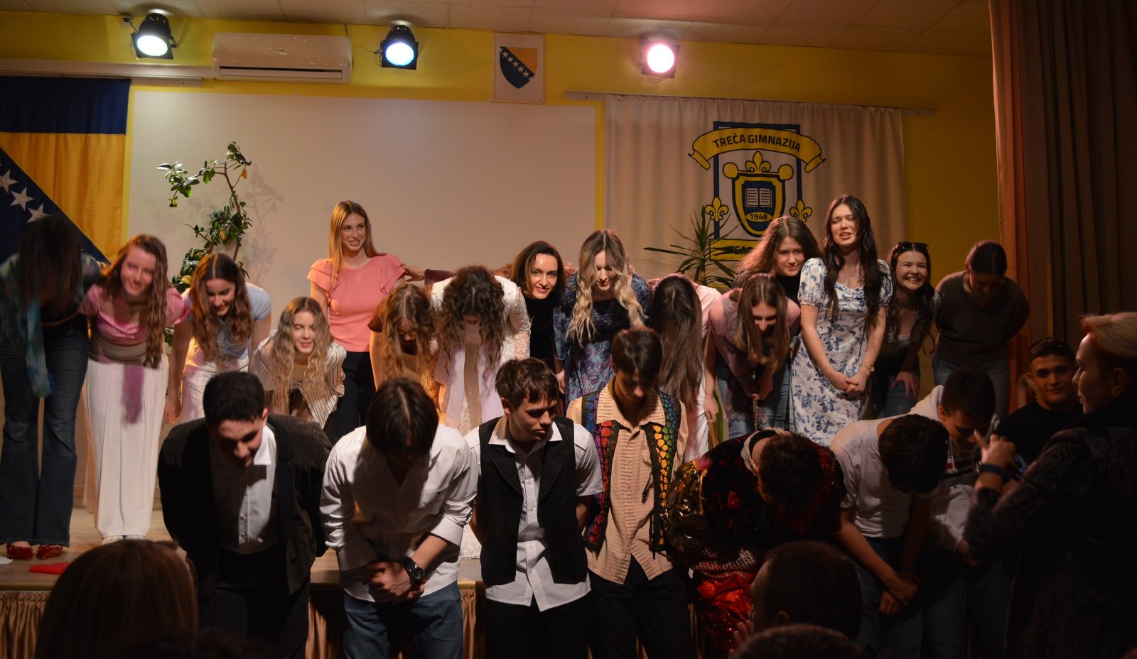 U publici su sjedili osmijesi, podrška i ponos. Naši gosti iz Makedonije, zajedno sa profesorima i učenicima iz Treće gimnazije, bili su dio atmosfere koja je rasla sa svakim aplauzom, onim koji se ne daje samo za izvedbu, već za trud, hrabrost i srce ostavljeno na sceni.