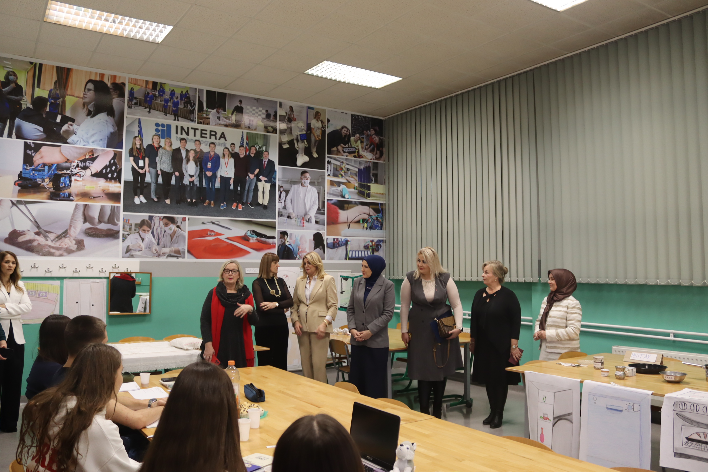 Dana, 02.12. 2025. naša škola je imala čast ugostiti ministricu za odgoj i obrazovanje Kantona Sarajevo Naidu Hota-Muminović, pomoćnicu ministrice Lamiju Husić, stručnu savjetnicu za Melisu Mizdrak, direktoricu Instituta za razvoj preduniverzitetskog obrazovanja Senadu Salihović, te višu saradnicu za profesinalni razvoj odgajatelja, nastavnika, stručnih saradnika Sedžidu Hadžić. Tokom posjete, uvaženi gosti su obišli nekoliko nastavnih časova, gdje su se upoznali s radom učenika i nastavnika, te savremenim metodama koje se svakodnevno primjenjuju u nastavi.