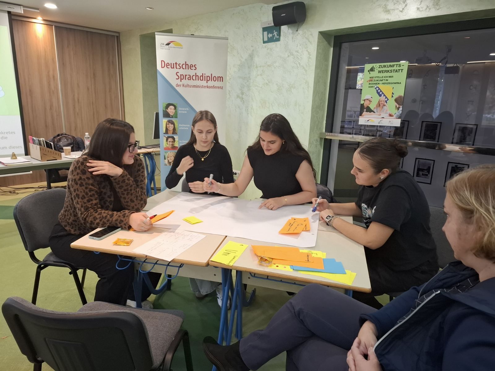 Naši Ajša, Džejla, Hana, Nadira, Vedad iz III-1 i Aida i Ena iz III-6, zajedno sa svojom prof. njemačkog jezika Džemilamnom Džananović, vrlo kvalitetno su sarađivali sa učenicima i profesoricama Druge gimnazije uz učeće profesora i profesorica iz ostalih sarajevskih DSD gimnazija i koordinatora za DSD program ispred Centrale za školstvo, Martine Batteux i Igora Ristića i formulisali odlične ideje i prijedloge i proveli kvalitetno zajedničko vrijeme u komunikaciji i druženju na njemačkom jeziku.